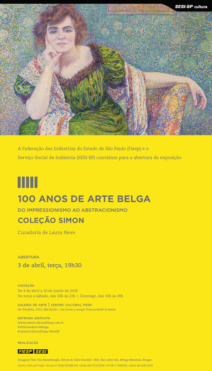 Exposição do acervo da Coleção Simon, com um panorama da pintura belga moderna, do impressionismo de Emile Claus à abstração gestual de Louis Van Lint.